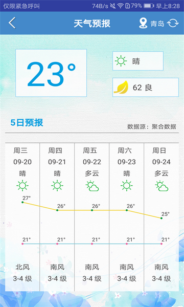 提供当前天气和未来5天的天气变化,为您的出行带来方便。