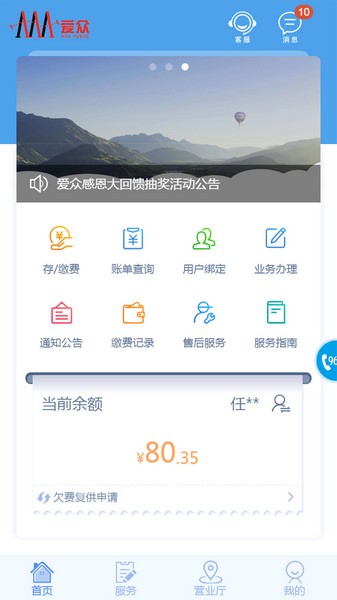 掌上爱众app官方版是一款为四川广安地区居民用户制作的便利生活费用缴纳软件。这款软件可以让用户在线上平台快速缴纳水电气费账单,通过输入用户户号和缴纳费用的类型来查询待缴清的费用账单,支持多种线上付费方式。同时,软件还收录了广安地区所有的营业网点信息,用户可以在地图上查看每一个网点的位置,如果用户需要线下前往办理业务的话可以根据这张地图来引导前往。此外,软件还会将水电公司的相关公告信息同步在平台上,抢修、停电、停水等通知会及时传达给用户,让用户提前做好准备以备不时之需。用户每一次缴纳的账单都会记录在历史账单中,可以随时通过账单查询功能来查看过往的账单,如果疑问可向平台官方反馈。此外,用户如果遇到意外故障情况的话可以通过平台申请售后服务,平台会及时安排专业维修人员上门提供检修服务,让用户的日程生活尽快恢复到正常。同时,用户还可以对售后人员的服务做出评价,在平台上发表自己的评价。除了这些,平台还会时不时向用户派发代金券、可兑换物品的积分,有许多的小福利。
