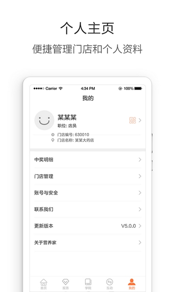 经典个人页设计,更便捷地管理门店和个人资料