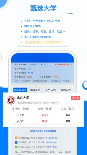 最棒的是,它还能根据考生的位次分析录取可能性,给出“难录取”、“稳定”、“保底”等六种评估,简直比升学专家还专业!对于那些想上好大学又没头绪的学生和家长来说,这款APP绝对是个大救星。总之,这个工具太实用了,强烈推荐给所有备战高考的小伙伴!