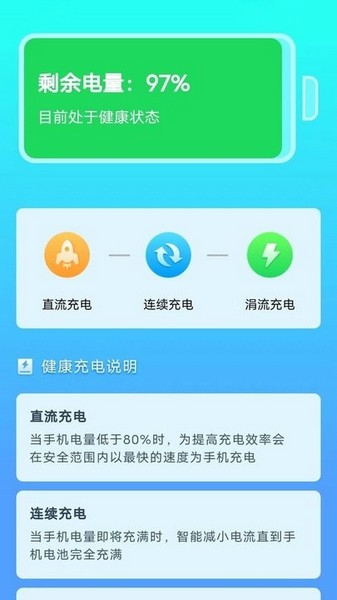 我最喜欢的是它的智能提醒功能,再也不用担心忘记拔掉充电器了。而且它还有清理手机空间的功能,可以释放内存,提升运行速度。总的来说,这款应用确实很方便,像一个私人管家一样管理着我的手机电池,让充电变得更简单、更安心。如果你也关心手机续航和健康状态,这个App绝对值得一试!