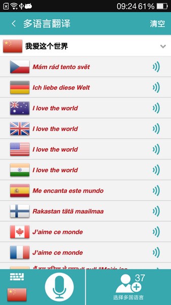 1、语音实时翻译到语音,支持62种国家和地区语言。