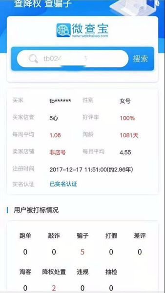 一键查询降权号、敲诈、骗子、差评、打假等使网络骗子现出原形