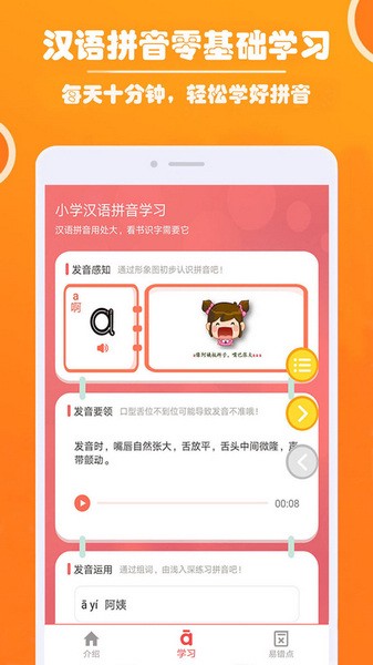 5、详细的拼音发音技巧和重点说明,图文并茂的方式让你学习更加方便,更能快速提高。
