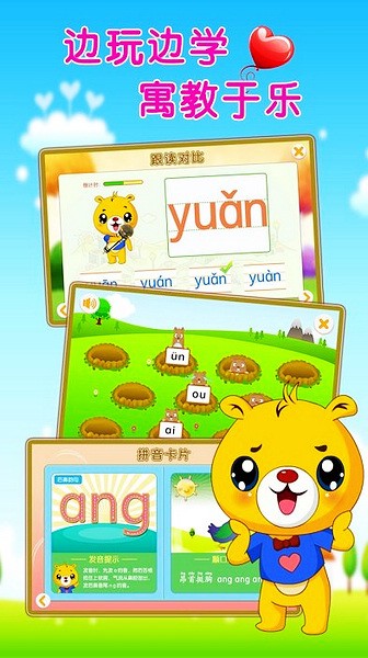 6、9款经典测验游戏,提升宝贝的拼音学习兴趣,从而达到快速学习、培养宝贝独立阅读的目的。