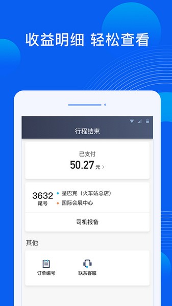 5、在线轻松查看每笔订单的收入明细,通过收入明细随时查看自己的每笔订单,简单操作即可轻松完成打车;