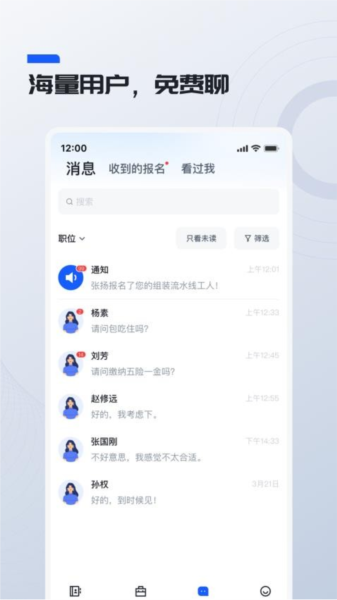 有任何的消息软件会实时通知用户查看,避免用户错过就业机会。