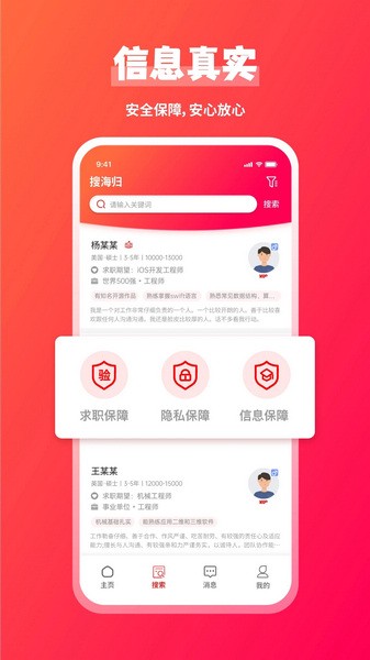 jobs海归网招聘是一款专为海归人才提供求职招聘服务的应用程序。由深圳市诺拉创想咨询服务有限公司开发,致力于为海外归国人才提供高效便捷的求职招聘平台。该应用内置丰富的求职招聘功能和便捷的用户体验,为海归人才和企业搭建了一个高效互通的平台,助力海归人才找到理想的工作,为企业招聘到高端人才。自2011年起,该公司连续多年成功举办海归人才专场招聘会,并于2023年推出了线上云聘会,实现了多城联动和全球范围内的招聘活动。