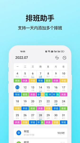 5、排班助手界面清晰简洁,一目了然。