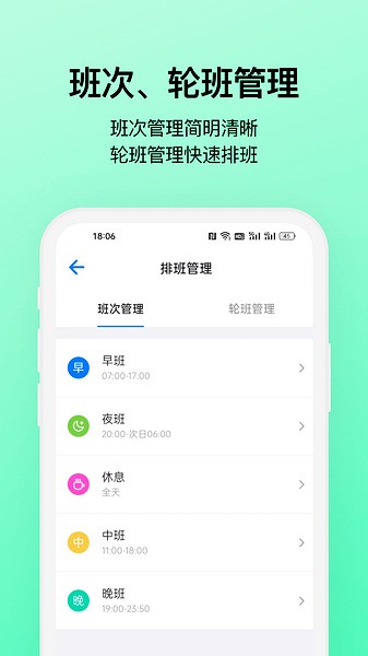 1、支持自定义班次,根据您的需求,自定义班次颜色和上下班时间;
