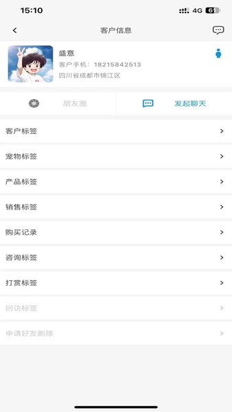 4、查看客户信息详情,编辑客户标签,便于能高效管理和发起聊天;