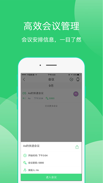 快速查看预约会议和历史会议详情,并可随时将会议分享给您的同事、客户等;