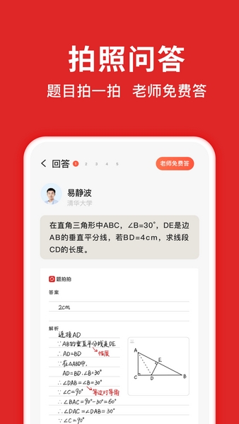 【拍照搜题】轻轻一拍,解答立刻呈现,更有知识点解析、帮你迅速理清思路,轻松学会