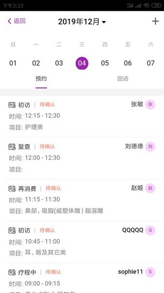 以多种形式进行回访,包括电话、微信等方式,安全快捷,清晰明了的展示了未回访、已完成、已取消回访状态,高效安排回访任务。