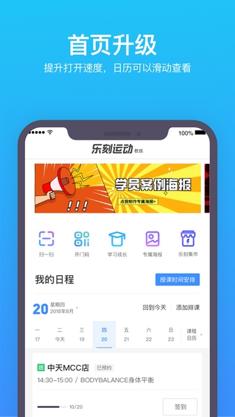 乐刻教练APP是一款有乐刻运动官方为教练们打造的移动办公管理软件,通过这款软件教练们可以随时随地查看课程安排,并支持安排私教课程,方便安排调整时间,并能在线与学员实时沟通,督促练习或提醒上课,让管理更加高效!不及你如此,还能实时查看自己的收益情况,快速对账更安心!