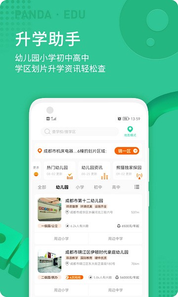 1、快速搜索查看学校的所有详细信息,获取到学区、政策等最新动态;