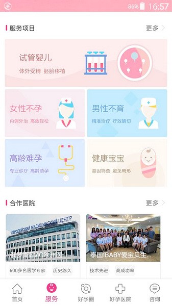 根据用户健康情况,推荐海内外生殖医院;海内外权威孕育专家、试管婴儿专家,为用户提供在线预约、在线问诊等服务,同时,医生通过孕育讲堂,给用户讲解孕育知识、备孕技巧,解决用户疑难,为用户提供更便捷、安心的就医体验。