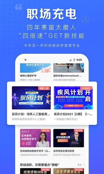 学堂在线课堂平台让你随时随地开启学习的新姿势。学堂在线app是一款拥有海量课程的在线学习平台软件,用户在这款学堂在线app上,可以免费学习来自世界各个名校的精品公开课程,清华、北大、麻省理工、斯坦福、加州伯克利等名校课程任你挑,认真学习之后通过考试,还可以兑换本门课程的证书。学无止境,你还在等什么呢, 选择感兴趣的领域,加入课堂,一起开始学习吧!