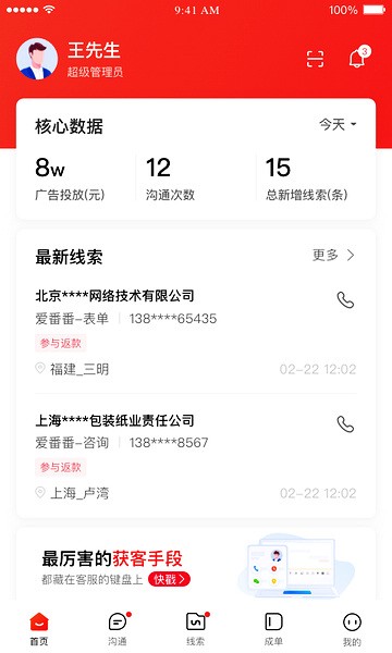 -管理员可随时随地为爱番番的线索池录入、编辑线索,让线索管理变得高效。