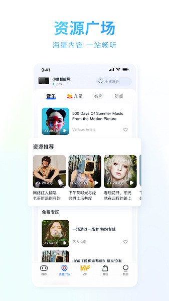 使用小度可以享受海量资源,说学逗唱应有尽有;