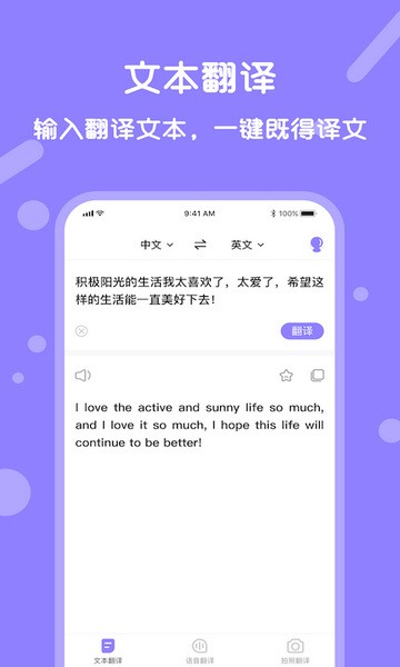 无论你输入的中文还是英文,都会帮您翻译成相对的语言,无需繁琐设置。