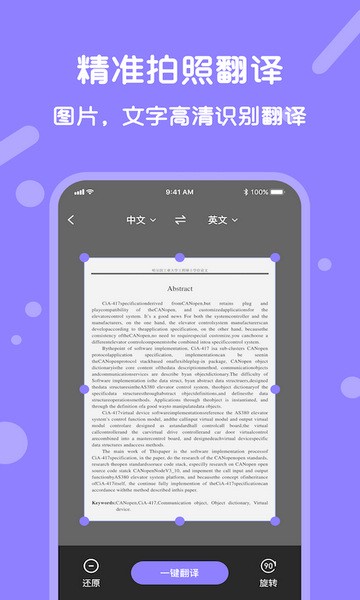 拍照后一键转换,翻译成自己想要的语言,无需手输,一拍即得。