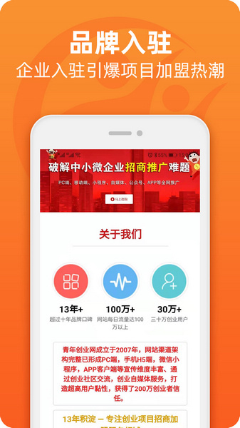 3、在这里,用户能够找到各种创业项目,快速了解各项目详情,在线加盟;