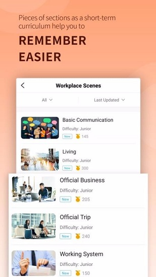 职场汉语课程碎片化,将课程碎片成短课程,更方便记忆与学习。