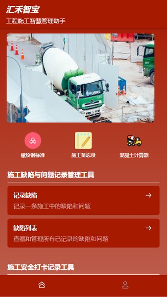 汇禾智宝助手是一款为工地施工提供智能管理服务的软件。这款软件可以帮助用户集合工地施工过程中出现的各类问题,将工程中存在的缺陷问题整理在一起记录,方便针对每一个问题进行调整。同时,软件还兼具混凝土的计算功能,为用户提供一个简单且准确的混净土计算工具,让用户能够快速得到相关的计算数据。此外,用户还可以在软件上查看标准螺纹钢的规格。