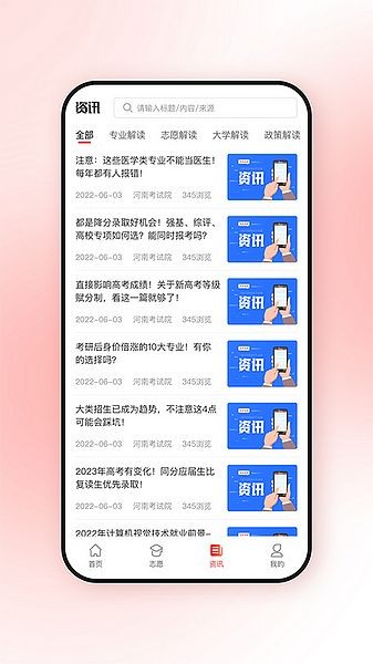 2、与高考有关的各种内容,各种信息一应俱全,包括各大高校的招生政策,志愿填报的技巧等多种内容。