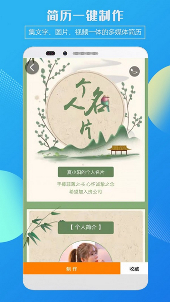 4、简历一键制作,集文字、图片、视频一体的媒体简历;