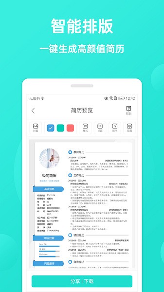 一键自动排版生成精美实用简历模板,完美的呈现在HR眼前。