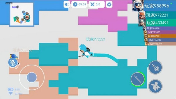 《圈地大作战》是一款多人联机竞技游戏,玩法简单却充满策略性。玩家需要在空白地图上染色,目标是在结算时占据最大面积。每局有多个玩家,每个人都有独特的颜色和专属的扩展方式。