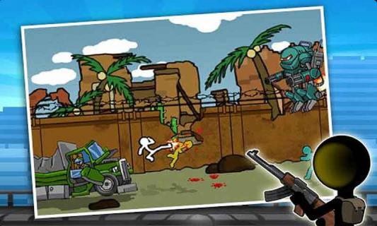 3、游戏中控制火柴人不断的跳跃躲避敌人的子弹,就可以顺利通关