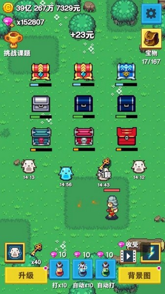 游戏目前正在获取金币,然后培养宝箱,宝箱会随着游戏的进行不断变化,包括大小、颜色等,然后通过它获得大量金币