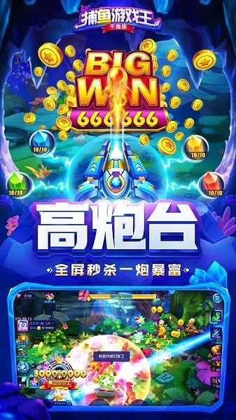捕鱼游戏王有更强的炮台火力,更爽的道具技能,更多的BOSS鱼种,更丰富的玩法副本,延续街机捕鱼的精髓之外,添加新颖的创新玩法!