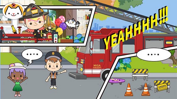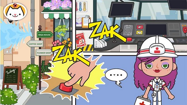 2、自由穿梭在不同的场景,尽情体验米加小镇的休闲娱乐时光,完成专业救援