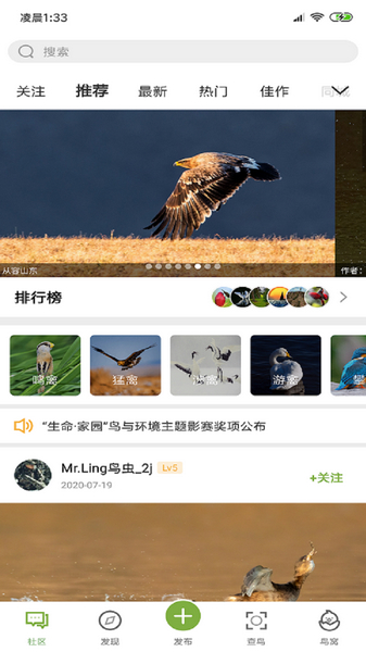 养鸟岛app是一款专为爱鸟人士打造的兴趣交友社区聊天软件,这里是鸟类爱好者的天堂,汇聚了很多的爱鸟资深玩家,用户可以通过养鸟岛结识更多志同道合的同好们。软件内还有各种鸟儿的百科,你还可以将鸟儿的摄影、想法分享给平台上的其他用户们。用户在养鸟岛上还能一键根据图片、相关体型和外形等已知条件查询鸟类信息,对该鸟品种进行判断,绝对是鸟类百科全书。在养鸟岛上,用户还能够一键掌握更多的养鸟知识,在线学习到一些关于养鸟方面的心得,满足用户日常在鸟类方面的各种需求。平台除了提供鸟类相关知识学习之外,还会有不定期的鸟类作品活动信息等。养鸟岛app,让你更懂鸟。