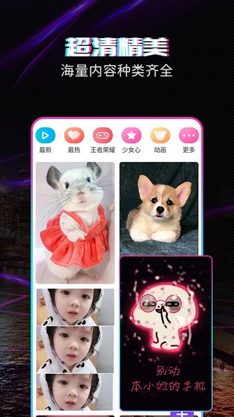 【海量内容】丰富的热门内容。抖音小姐姐,卡通动漫,娱乐明星,可爱萌宠,热门游戏,风景名胜等,你想要的都能找到。