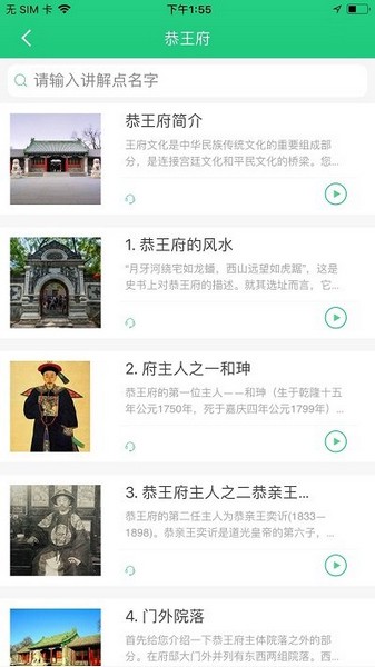 恭王府讲解语音app是一款专业实用的线上景区智能讲解器,在这里,不但完美采用了自主专利的GPS+微定位景区导览技术,可以为你实现游览经典走到哪里就听到哪里,让你更好的在线收听有关经典的介绍,而且拥有着三维实景效果的景区手绘导览图,让你能够参观有序,即便没有导游也可以很好地进行游览,除此之外,这款软件操作使用简单方便易上手,随时随地即可跨苏让你轻松了解恭王府。