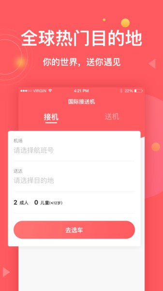 异乡接机app是一款为海外留学生打造的接机软件,在这里,不仅可以很好地帮助你轻松解决交通用车问题,能够为你提供安全便捷的接送机服务,同时有着超多车型可供你任意选择,充分满足你多样化的个性需求,而且只需要线上下单,航班落地的时候就会有你的专属司机等候着你的到来,除此之外,这款软件界面简洁美观清晰明了,不存在其他隐形消费,也无需额外支付其他费用给司机。