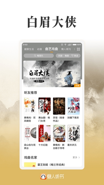 懒人听书高级版是一款主打手机在线听书的软件,闲着无聊,那么不如使用这款软件边听书边喝茶吧!海量优质资源任你点播,无论是有声小说、电台节目,还是各种知识文学等全都有,且类型相当丰富,覆盖了小说、评书、娱乐、教育、广播剧等,满足不同的用户听书需求!同时软件还可支持下载收听,离线收听更流畅,且即使断网也不怕!