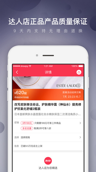 达人店最新版本是一款由韩庚参与打造的潮流购物平台,主要面向想创业的人。这里门槛很低,不用自己操心物流、客服这些麻烦事,只需要选货和推广就行。货源很丰富,包括美妆、食品、母婴等等,而且都是正品,有PICC承保,还有尚妆网做背书。