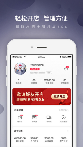 达人店的所有商品无需打款,无需压货;无需物流,平台一件代发货;无需售后,平台配备专属客服解决售前售后咨询;店主只需出售商品后即可获得现金利润,推荐好友成为店主更有额外奖励。