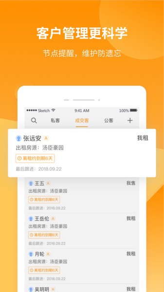 5、用户可以清晰的看到自己的客户信息,了解租约到期时间,快速进行跟进;