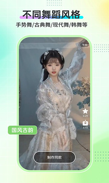 这个软件的功能非常强大,可以让你制作各种风格的舞蹈视频,比如韩舞、宅舞、手势舞等等。它还支持多种服装、场景和滤镜选择,让视频看起来更丰富生动。我觉得这个App挺有意思的,特别是对于那些喜欢跳舞但又不想自己拍摄的人来说,真的超方便。