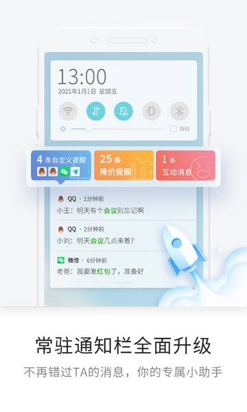 将同款APP通知按照类别自动分类,用户可根据需要设置提醒或勿扰;如:某宝会推送物流、订单、促销、推荐商品的消息,我们可以选择对物流和订单信息设置提醒,对推荐商品类的通知设置勿扰,感觉棒棒哒~
