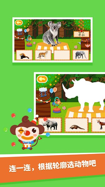 3、点击第二个“连一连”,根据上方的动物轮廓,猜一猜是下面哪一个动物的图形。
