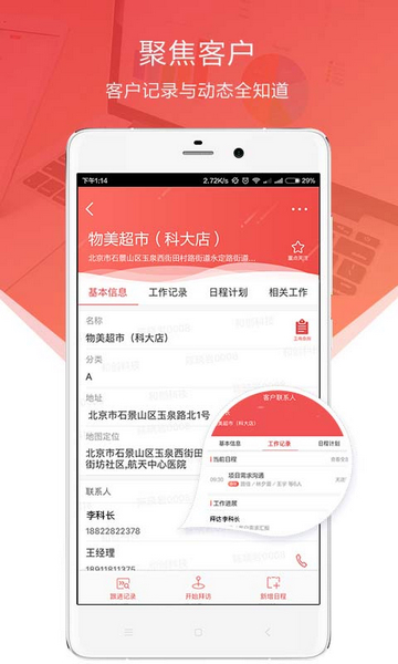 红圈通,帮助您和团队聚焦客户:将客户信息、CRM、客户有关的工作记录、日程计划、跟进动态、相关资讯有效聚合,快速规划和执行围绕客户的所有工作。