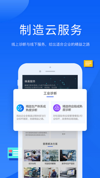3、制造云服务,线上诊断与线下服务,给出适合企业的精益之路。